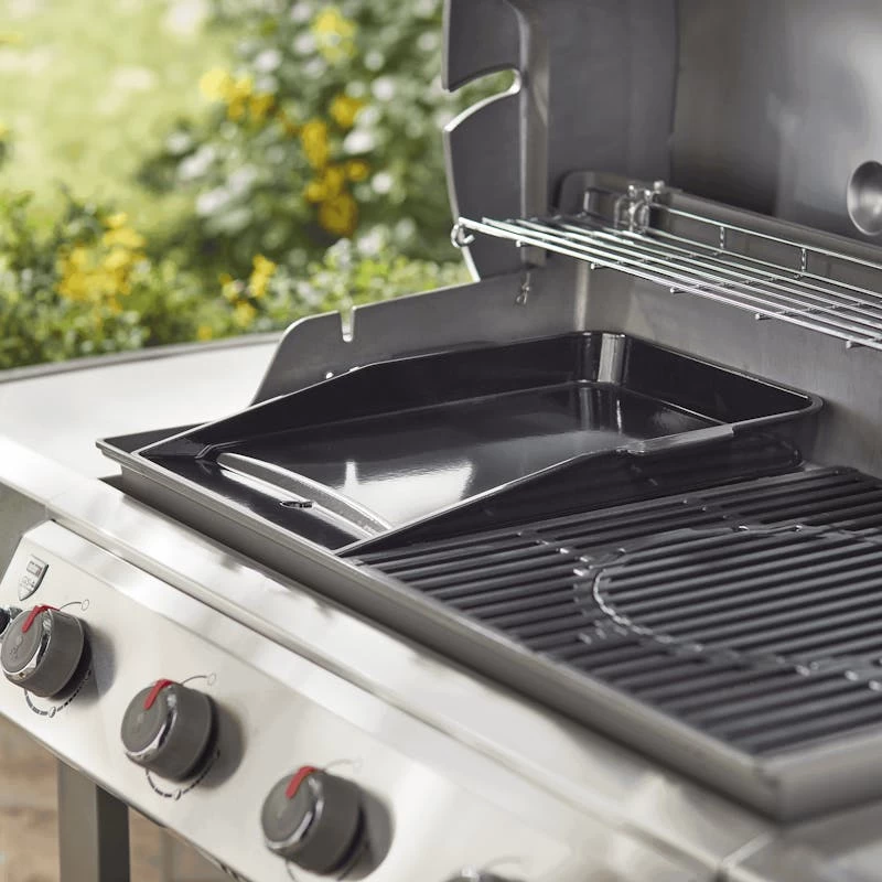 De Deluxe Plancha vervangt een deel van het kookrooster in je Genesis II gasbarbecue. Deze Plancha is perfect om delicater voedsel te bereiden, zoals zeevruchten, eieren, gesneden groenten of kleiner voedsel dat normaal door het rooster zou vallen. Het porselein geëmailleerde oppervlak is gemakkelijk schoon te maken.