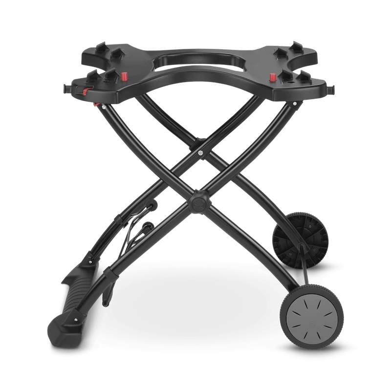 Barbecue ook in het park. Het draagbare onderstel is gemaakt om onderweg barbecueën net zo gemakkelijk te maken als het omkeren van een hamburger. Zet uw Q barbecue op het onderstel en gebruik het als stand op de optimale barbecuehoogte. Als u klaar bent om met uw barbecue op pad te gaan, klapt u het onderstel gewoon uit en rolt u het naar uw auto of meteen het park in.