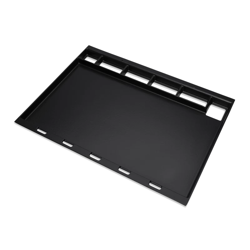 Bak je favoriete gerechten op je eigen barbecue met de grote bakplaat voor de Genesis-barbecue. Past perfect op je Genesis 300-gasbarbecue. In enkele seconden transformeer je het hele grilloppervlak. Deze bakplaat is gemaakt van met porselein geëmailleerd gietijzer en benut de superieure branders van je barbecue voor gelijkmatige warmte van het gehele oppervlak. Van pannenkoeken en eieren tot zeevruchten en groenten – je hebt de volledige controle en altijd met restaurantwaardige resultaten: van de eerste tot en met de laatste keer omdraaien. En het vetopvangsysteem past perfect bij je barbecue. Zo voorkom je morsen en wordt het vet efficiënt opgevangen om vetvlekken te voorkomen. Geniet van het beste van twee werelden zonder een volledig apparaat te hoeven aanschaffen. Ga aan de slag met je bakplaat.