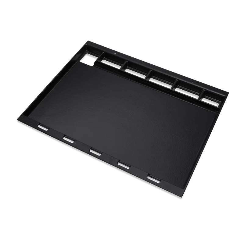 Bak je favoriete gerechten op je eigen barbecue met de grote bakplaat voor de Spirit-barbecue. Past perfect op je Spirit 300-gasbarbecue. In enkele seconden transformeer je het hele grilloppervlak. Deze bakplaat is gemaakt van met porselein geëmailleerd gietijzer en benut de superieure branders van je barbecue voor gelijkmatige warmte van het gehele oppervlak. Van pannenkoeken en eieren tot zeevruchten en groenten – je hebt de volledige controle en altijd met restaurantwaardige resultaten: van de eerste tot en met de laatste keer omdraaien. En het vetopvangsysteem past perfect bij je barbecue. Zo voorkom je morsen en wordt het vet efficiënt opgevangen om vetvlekken te voorkomen. Geniet van het beste van twee werelden zonder een volledig apparaat te hoeven aanschaffen. Ga aan de slag met je bakplaat.