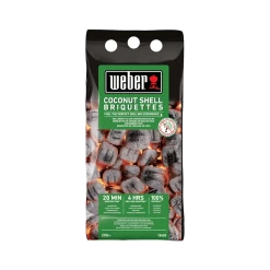 De kokosbriketten van Weber zijn een hoogwaardige brandstofoptie en staan garant voor 4 uur grillen. En met een ontstekingstijd van 20 minuten hoef je niet lang te wachten om aan de slag te gaan. Ze zijn gemaakt van 100% natuurlijk materiaal – gecarboniseerde kokosnootschillen en tapiocazetmeel – en bevatten geen hout.