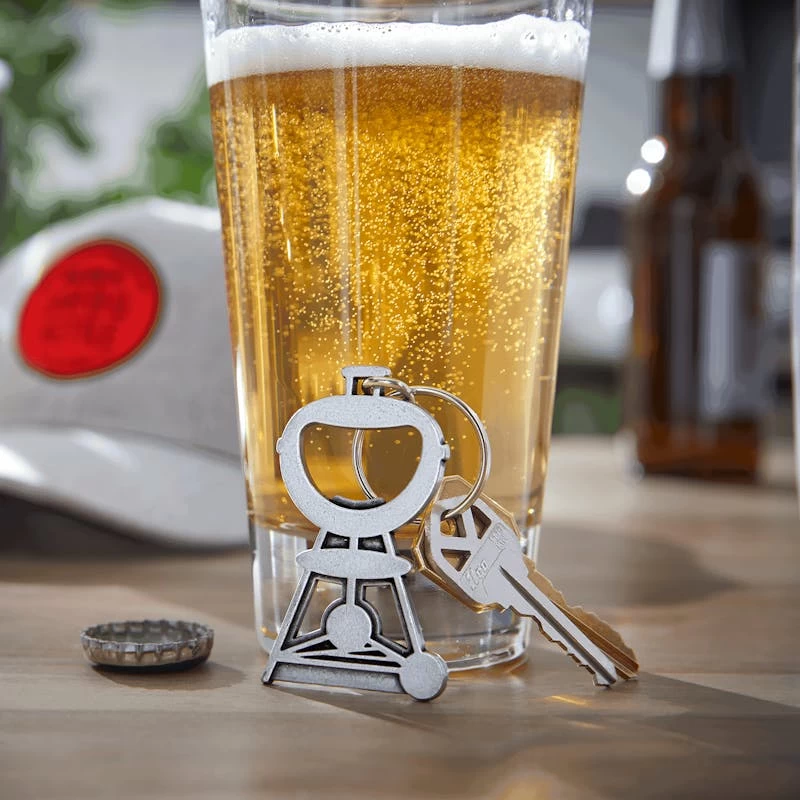 Neem je Classic Weber Kettle overal met je mee en wees altijd voorbereid op het openen van een koud drankje. De Limited Edition Weber Bottle Opener-sleutelhanger heeft een metalen ring om je sleutels aan te hangen, of hang hem aan je rugzak of draagtas als persoonlijk accessoire. De duurzame flesopener van kwalitatief staal vormt een leuke verrassing voor een party of een speciaal cadeau voor je barbecue-buddies.