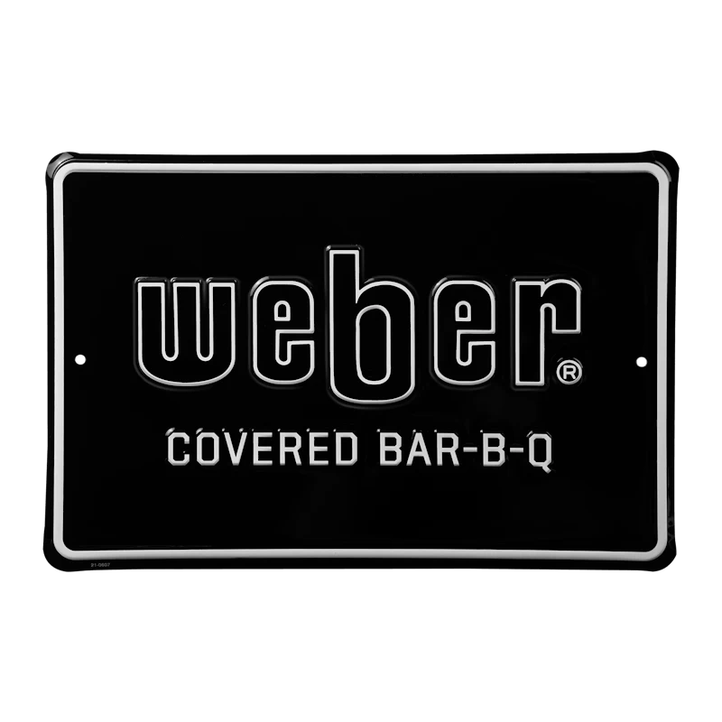 Met dit stoere metalen bord uit de Limited Edition Weber ‘Covered Bar-B-Q’ laat je jouw passie voor barbecueën zien. Door de stevige samenstelling met aluminium is het bord geschikt voor gebruik binnens- én buitenshuis. Perfect voor de achtertuin, de hobbykamer of waar je dan ook je Weber-verzamelitems tentoonstelt.