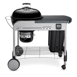 Met zijn zware stalen frame en geschilderde metalen werktafel is de Performer Premium GBS voorzien van een ingebouwd werkblad waarmee u uw broodjes en specerijen binnen handbereik houdt. Het strakke porselein-geëmailleerde deksel van de Performer Premium GBS heeft net als de klassieke ketel een roestbestendig aluminium ventilatierooster dat helpt de luchtstroom te regelen en een ingebouwde dekselthermometer waarmee u de temperatuur in de barbecue in de gaten houdt. Dit handige, moderne werkstation in de achtertuin heeft ook drie gereedschapshaken aan het zijblad waarmee u uw gereedschap binnen handbereik houdt, en het met glas versterkte nylon dekselhandvat met hitteschild beschermt uw hand tegen de vlammen.