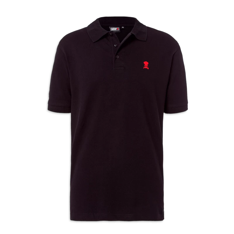 Straal uit dat u een echte grill master bent met dit stretch poloshirt in klassiek zwart. Dit poloshirt met kraagje en drie knopen is verfraaid met een in het rood geborduurd Weber® Kettle logo en is net zo duurzaam als dat het stijlvol is.