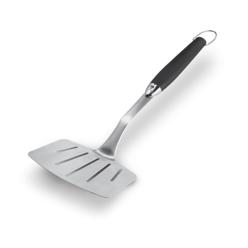 Delicate visfilet moet uiterst voorzichtig worden behandeld op het grillrooster. De brede kop van de Premium spatel pakt de hele filet op en draait deze voorzichtig om zodat alles op zijn plaats blijft en beide zijden even mooi gegrild worden. Deze robuuste spatel is ook sterk genoeg voor het zonder moeite optillen van grote braadstukken.