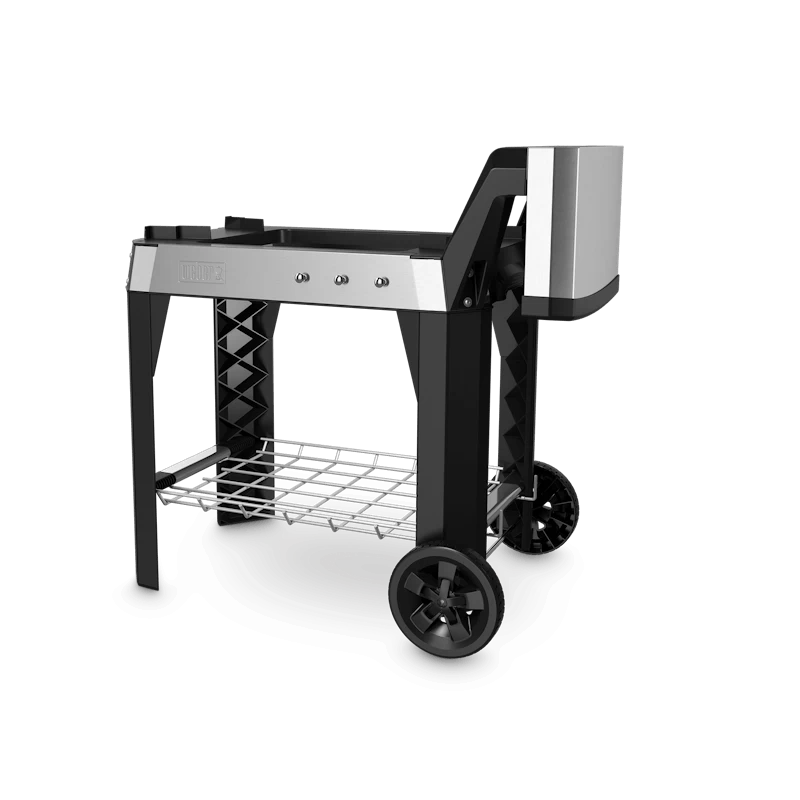 Plaats uw Pulse barbecue op het robuuste onderstel om op optimale hoogte te grillen en om de barbecue eenvoudig te verplaatsen. Het onderstel is ideaal voor het voorbereiden van gerechten dankzij de geïntegreerde gereedschapshaken en een werkblad voor dienbladen.