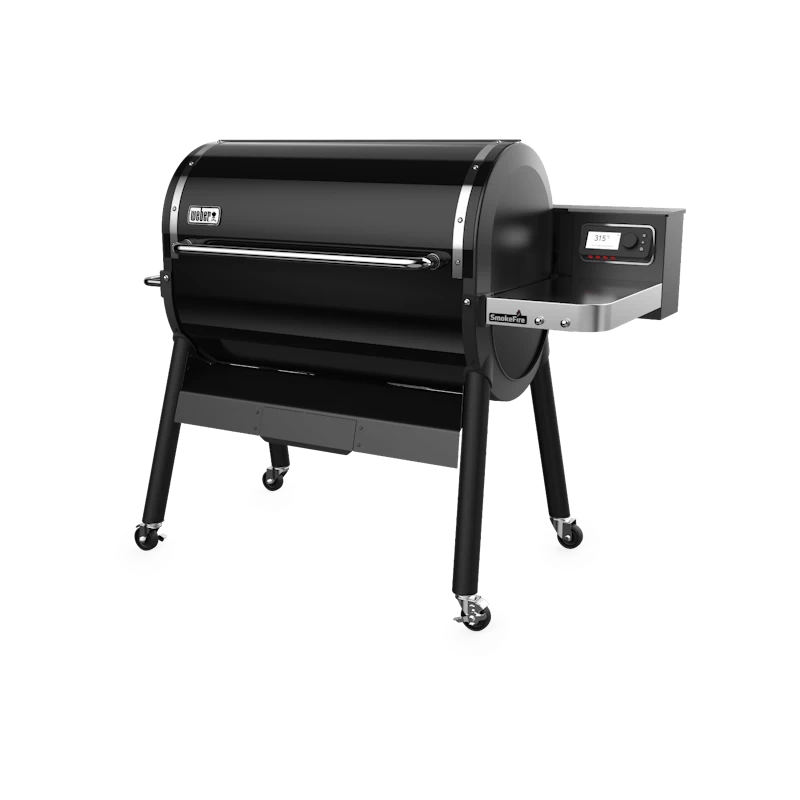 SmokeFire is een echte allround BBQ met een temperatuurbereik van 95-315°C. Je kunt er biefstuk mee dichtschroeien, maar ook brisket mee roken, taarten mee bakken en alles daartussenin. De echte houtsmaak zorgt ervoor dat jouw favoriete recepten nog beter smaken dan voorheen. Het grote grillrooster (6,370cm²) dat plaats biedt aan een maaltijd voor 8 personen, geeft je de vrijheid om te kiezen tussen direct en indirect grillen. SmokeFire wordt geleverd met onze toonaangevende Weber Connect stap-voor-stap barbecue-assistent die koppelt met je smartphone om meldingen te sturen van wanneer het tijd is om te draaien en te serveren. Het Gourmet BBQ System (GBS) grillrooster transformeert de SmokeFire in een multifunctionele barbecue met een breed scala aan GBS accessoires zoals een pizzasteen, Sear Grate, Dutch oven en nog veel meer. Weber’s exclusieve porselein geëmailleerde afwerking creëert zowel een elegante look en is bestand tegen de zwaarste omstandigheden, terwijl roest en barsten worden voorkomen. Met de grote vultrechter en schuine vijzel kun je zelfs ’s nachts grillen en roken zonder dat de pellets vastlopen.