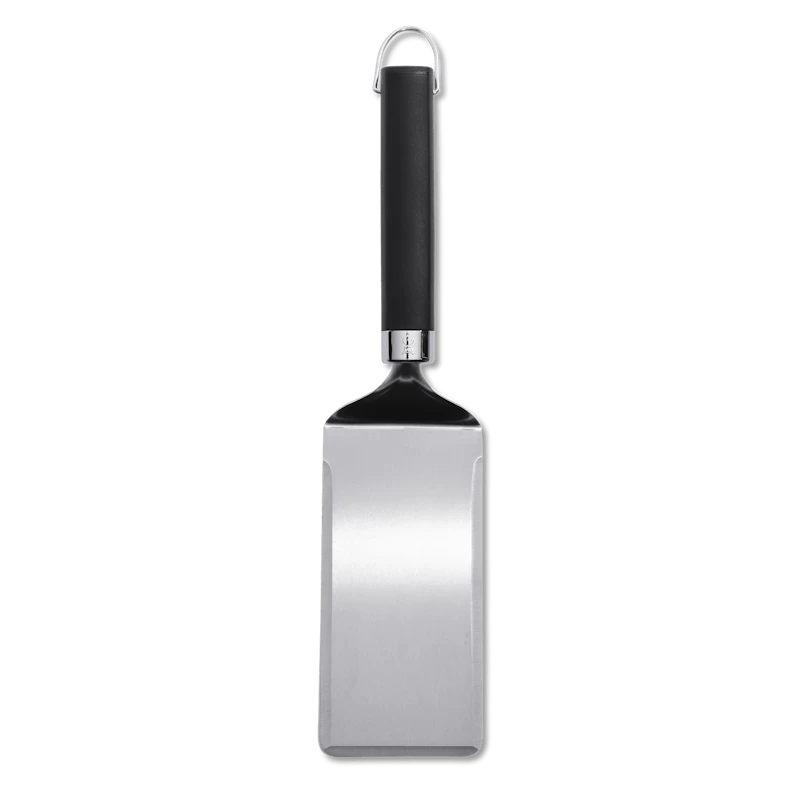 De spatel voor de bakplaat met antisliphandgreep en schuine rand die je eenvoudig onder je voedsel schuift, zorgt ervoor dat je je eten gemakkelijk kunt verplaatsen. De handgreep is ook verhoogd, zodat de spatel niet vies wordt als je hem even weglegt.