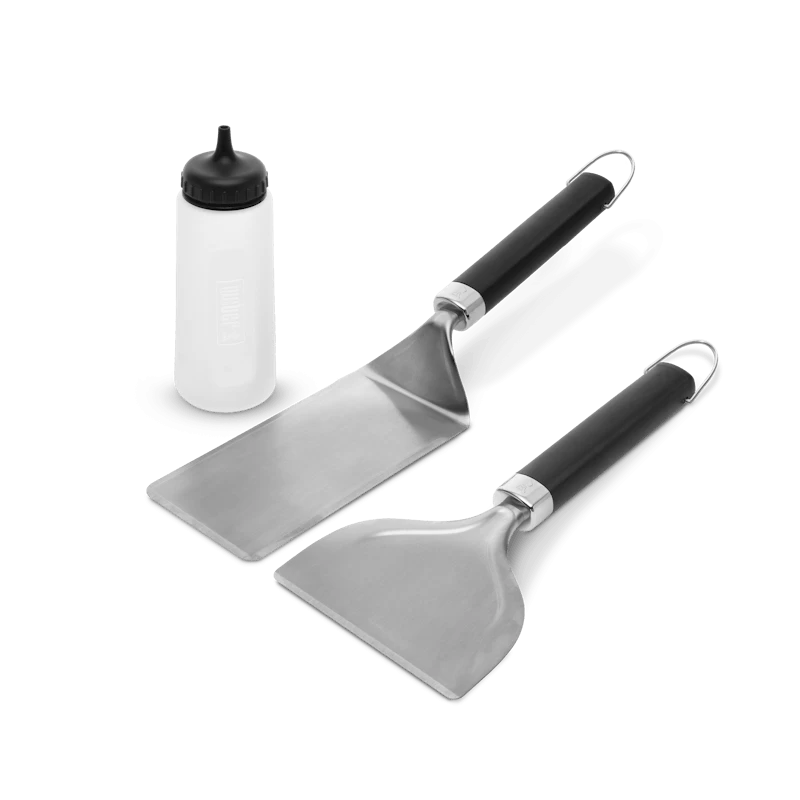 Ga voor eenvoudig en lekker grillen. Met deze starterset voor de bakplaat maak je alles: van luchtige pannenkoeken en hartige fajita’s tot klassieke gegrilde kaas. Omvat: Spatel voor de bakplaat, schraper voor de bakplaat en een knijpfles