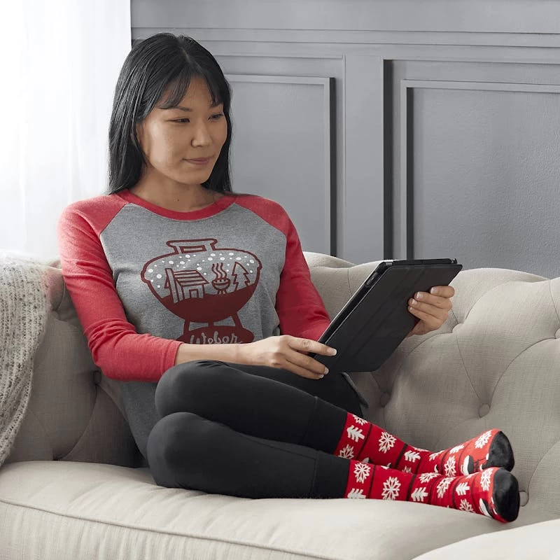 Een must-have voor elke wintergarderobe. Op dit Weber® Winter Grilling Club-shirt met raglanmouwen staat een sneeuwbol in de vorm van een ketel waarin barbecueën tijdens koude dagen wordt afgebeeld. Ongeacht of je de elementen tart of lekker wegkruipt op de bank, dit shirt met relaxte pasvorm is heerlijk comfortabel bij elke gelegenheid.